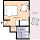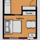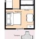 L'appartement d'une pièce de type A comprend un lit double, une kitchenette équipée et une salle de bains avec douche. Les appartements de ce type sont situés au rez-de-chaussée de la structure. Idéal pour deux adultes.