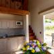Onze gasten kunnen kiezen tussen twee verschillende typen. Het type 1 suite is uitgerust met een slaapkamer met tweepersoonsbed, een woonkamer met een slaapbank, een mezzanine uitgerust met twee extra bedden, de ingerichte kitchenette, een badkamer met douche en een groot gemeubileerd terras. Ontworpen voor gezinnen tot 6 personen.